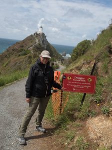 We gaan via de Catlins naar Invercargill, wat een schilderachtige rit zou moeten zijn met her en der wat bezienswaardigheden. We rijden eerst een stuk naar het beginpunt en al gauw komt de eerste stop in beeld: Nugget Point. De smalle klif in zee huist een vuurtoren en metersdiep beneden zien we de zeehonden lekker liggen in het zonnetje. Het waait wel erg hard en net voordat we de vuurtoren bereiken is ook de zon weg. Op de uitkijkplatformen worden we bijna weggewaaid de zee in, maar wat een spectaculair uitzicht hebben we op de woeste golven die metershoog op de rotsen knallen. We stellen de kans om dolfijnen te zien bij naar 0, maar naast de zeehonden zien we ook nog wat leuke geelgekleurde vogeltjes.