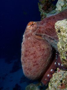 De dag breekt weer akelig vroeg aan omdat we graag nog 3 duiken willen maken. Dus worden we om 5.15 gewekt… De jarige Tanja wordt toegezongen in ’t Nederland door de duikers, in het Arabisch door de bemanning en uiteindelijk het Engels door de hele bootbevolking. Tijd om te duiken. Het is een driftduik en die is geweldig. Op de hoek van het rif staat een stevige stroming en het enige dat we kunnen doen is ons mee laten voeren langs al dat moois. Rij na rij staan de gorgonen in de stroming en filteren hun voedsel. Ze worden vrijwel zonder uitzondering bewoond door Spitssnuitkoraalklimmers (daar zijn ze weer!). Als de rust terugkeert doordat de stroming minder wordt zien we octopussen, napoleons, een valse steenvis, naaktslakken (waarvan we er overigens teleurstellend weinig zien, de Zeelandbrug levert meer naaktslakken). We redden het om terug te duiken tot aan de boot zodat we bij bovenkomst meteen de heerlijke geur van pannenkoeken op kunnen snuiven.