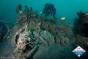 Maar dat betekent niet dat er af toe flink doorgepakt moet worden. Het te water gaan bij een duik is altijd een moment waarop er geen tijd is om lekker rustig aan te doen. En deze ochtend al helemaal want alle geraadpleegde bronnen voorspellen dat het een werkduik gaat worden. We liggen voor het zeegat tussen Terschelling en Ameland voor een duik op het wrak van de