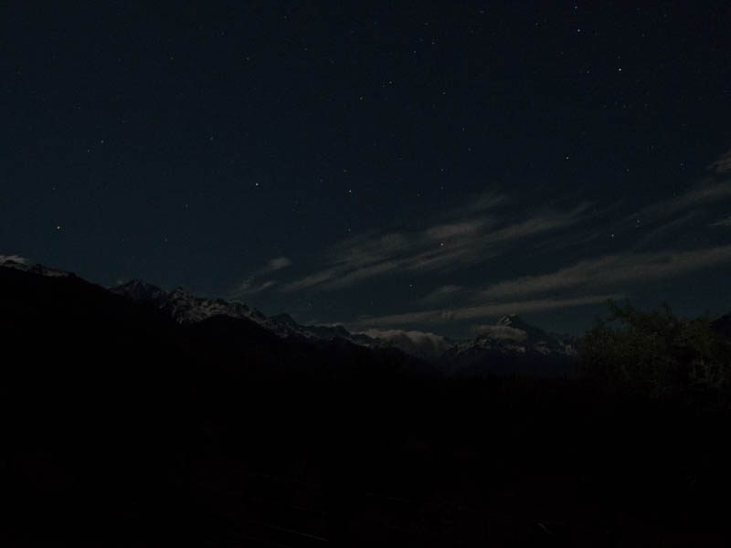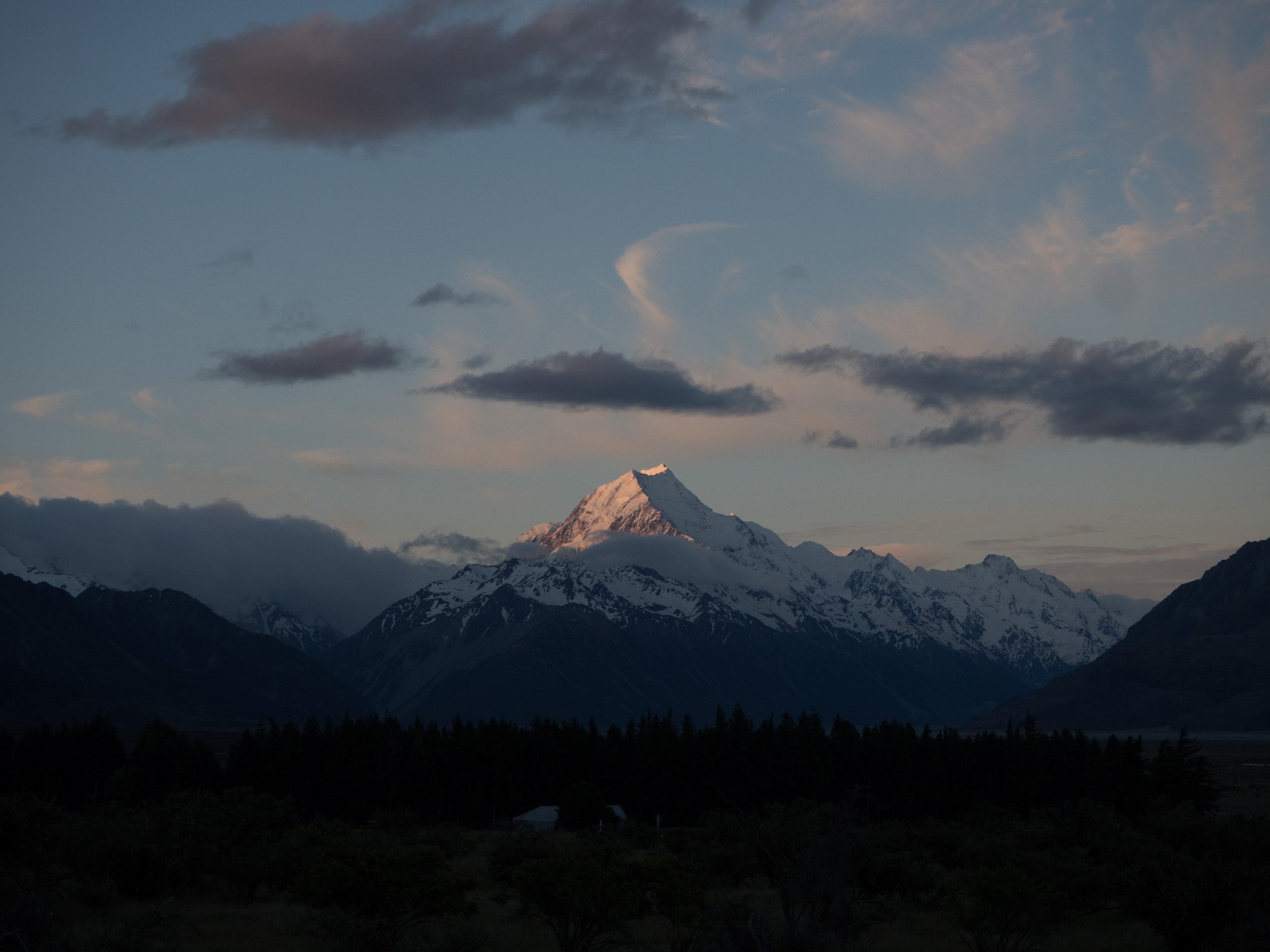 Eerst een flashback naar gisteravond. Rond een uur of 11 gaan we gewapend met camera en statief op zoek naar een mooie plek voor nachtfotografie. Jammer is wel dat er een klepper van een maan aan de hemel staat, voor een nachtfoto staat dat ongeveer gelijk aan de zon. We proberen wat en weten Mount Cook met sterren erboven te vangen, maar lastig blijft het. Een andere campinggast ziet ons staan en komt even kijken. Hij heeft zelf ook een vergeefse poging gedaan, maar heeft zijn huiswerk beter gedaan dan wij. Vannacht om 2 uur is de maan onder en zal de melkweg vrijwel precies boven Mount Cook staan. We besluiten de wekker om half 3 te zetten…