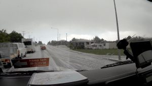 Vlak voor Dunedin wordt de weersomslag uiterst duidelijk. Het begint met een enorm regenbui die overgaat in hagel en uiteindelijk rijden we door een dorp dat bedekt is onder een flinke laag sneeuw… Ook op het Otega schiereiland, voor de kust van Dunedin is het koud en winderig. We regelen een camping en gaan naar de punt van het schiereiland waar zich een kolonie van koningsalbatrossen bevindt. De enorme beesten navigeren behendig in de stormwind.